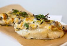 Филе цыпленка с ветчиной и сыром, соусом и рисом