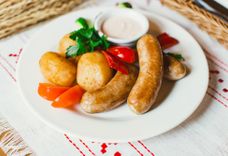 100/150/12 г • картофельное пюре, котлета из птицы, кетчуп, маслины